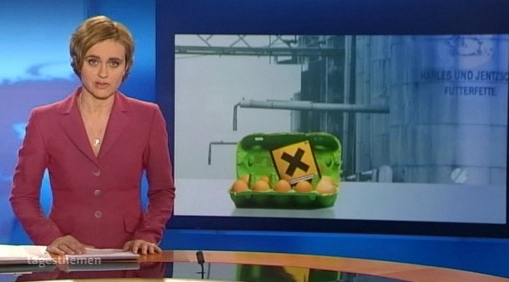 Stellen Sie sich vor, Sie sind Grafiker, beschäftigt bei einer deutschen Nachrichtensendung, und plötzlich kommt die schreckliche Meldung, dass Hühner oder Eier oder sonst eines dieser seltsamen Produkte aus dem Agrarsektor in Kontakt mit Dioxin gekommen sei. Und noch schlimmer: Das Ganze erscheint so relevant, dass Sie eine komplette Woche über jeden Tag darüber berichten sollen. Fünf Werktage lang, jeden Tag, Dioxin, Eier, Hühner… was nun?