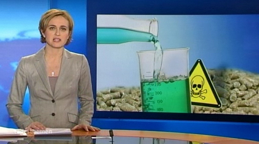 Mittwoch war man dann soweit, es nicht mehr länger auf die leichte Schulter zu nehmen und die Gefährlichkeit des Dioxins herausstellen zu wollen. Durch Einsatz eines giftgrünen Eierkartons: