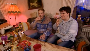 Merke: Wenn psychedelische Sitzgruppenmuster, handgeklöppelte Deckchen und Erwachsene in Kinderkleidung zusammenkommen, ist man sicher: Es ist Deutschland hier.